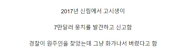 얼마 전 뉴스 매체를 통해 밝혀진 '길가다 8천만원 주운 고시원생'의 스토리가 다시 화제가 되고 있다.