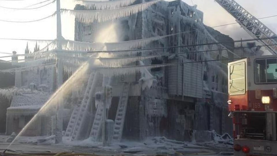 영하 20도에도 화재를 진압하기 위해 출동한 소방관들의 현장 사진이 눈길