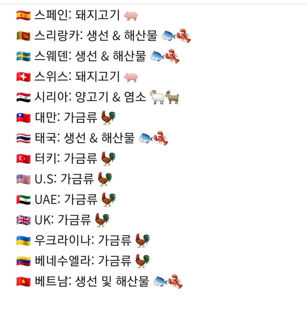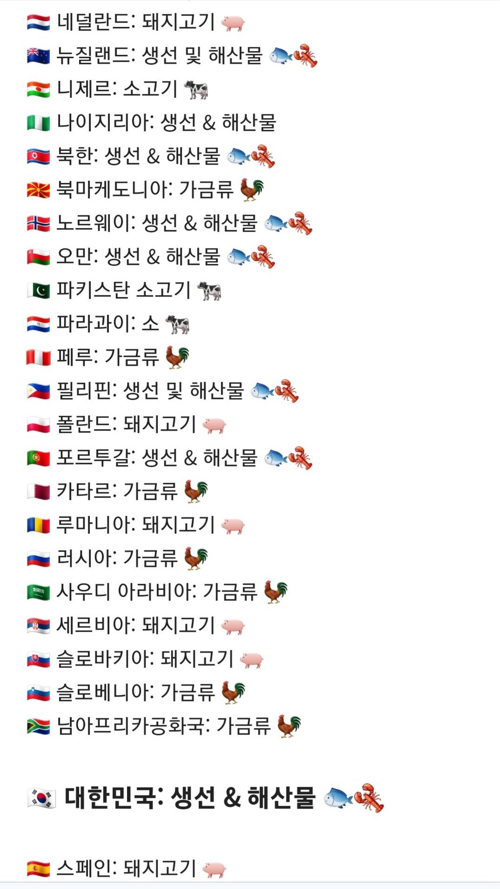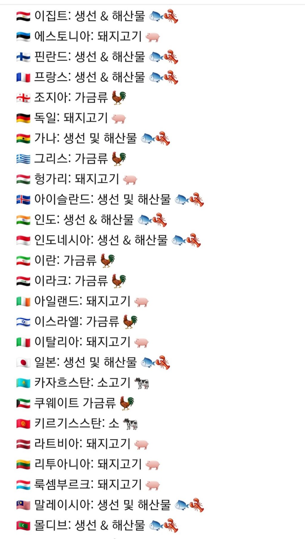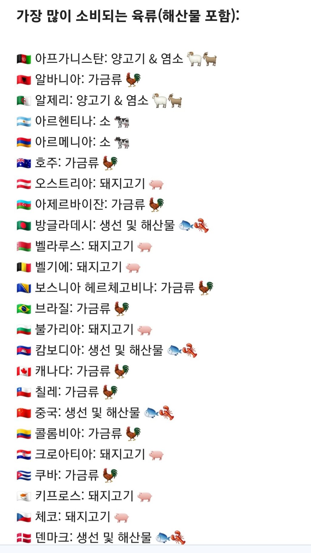 각 나라 가장 많이 소비 되는 육류(해산물 포함)