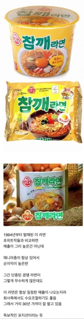 바로 오뚜기의 참깨 라면 입니다. 인기가 없으면 도태되고 사라지는 라면 시장에서 이상하게 뚜렷한 마니아층이 있어서 순이익이 높은 라면 중 하나라고 합니다.