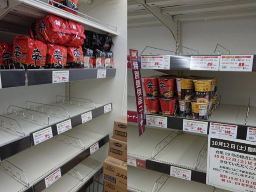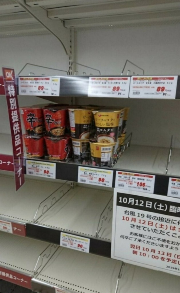 이는 하기비스 직전의 편의 점의 모습으로 대형 태풍에 인프라가 끊길 것을 대비해
