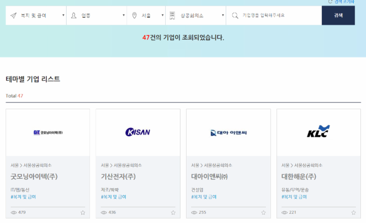 테마별, 업종별, 지역별로 확인이 가능하니 구직이나 이직시 참고하자.