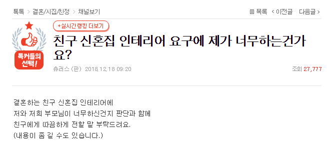친구의 황당한 신혼집 인테리어 요구 논란