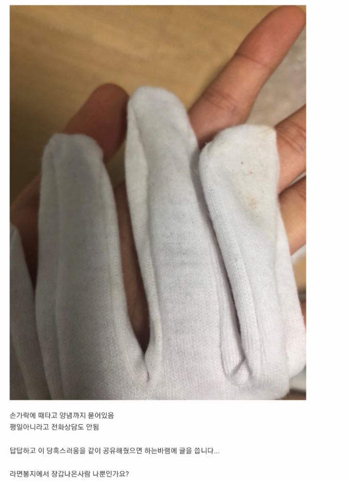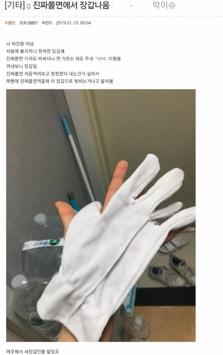 오뚜기 '진짜쫄면'에서 장갑 발견