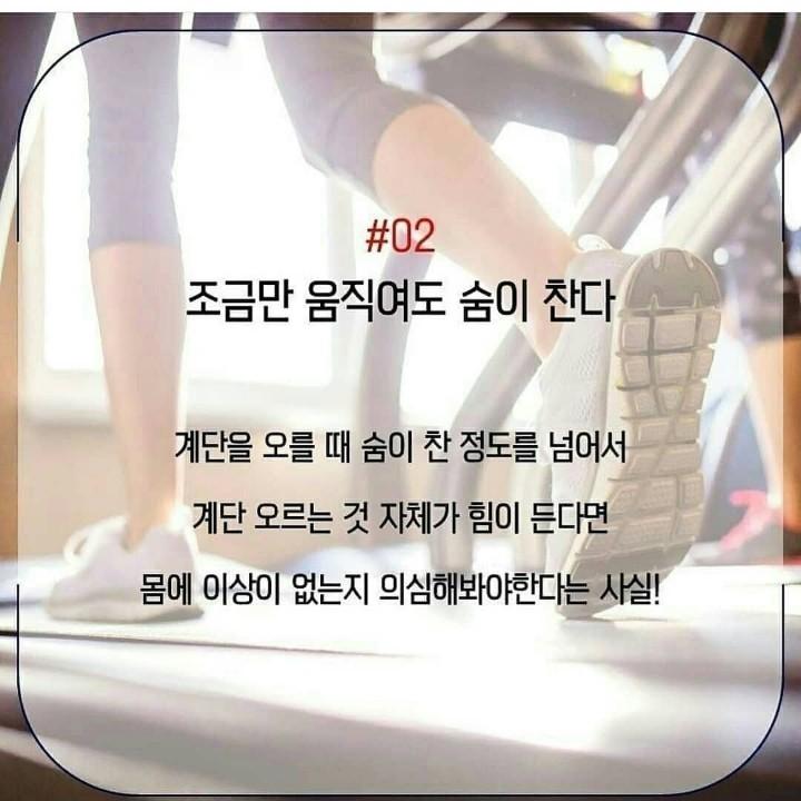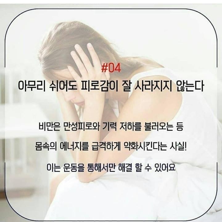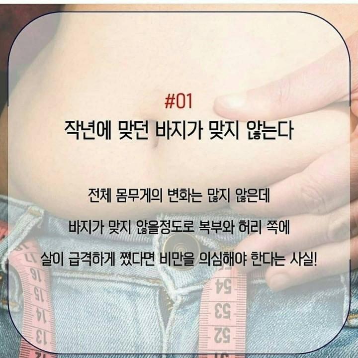 다이어트 하라고 몸이 보내는 7가지 신호 늘 시도는 하지만 유지하기가 쉽지 않은 것이 바로 다이어트이다. 하지만 몸이 이런 신호를 보낸다면 당신은 반드시 다이어트를 해야한다. 아래 7가지 신호를 보고 해당하는 것이 있다면 오늘부터 다시 다이어트를 결심해보자.