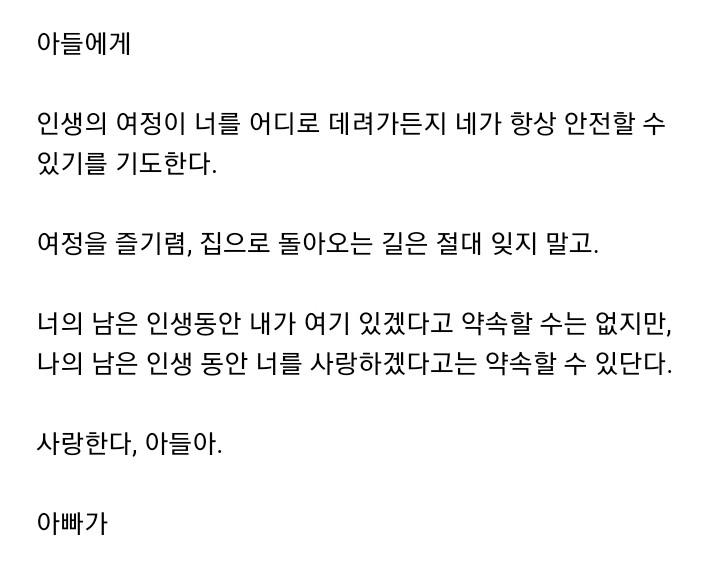 아빠가 아들에게 선물한 지갑 아빠가 아들을 위해 선물한 특별한 지갑이 네티즌들의 마음을 울리고 있다. 이 지갑에는 아들을 향한 아버지의 아주 특별한 메시지가 숨어 있었다. 아들을 생각하는 아버지의 마음이 느껴지는 뭉클한 메시지를 읽어보자.