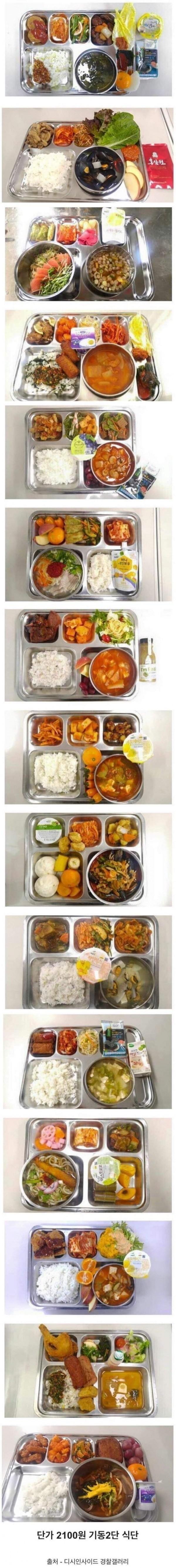 2100원짜리 의경 식단 단가가 2100원인 의경 식단이 한 커뮤니티에서 화제가 되고 있다. 이 식단은 저렴한 가격에도 불구하고 질과 양은 물론 종류까지 다양해 눈길을 모은다. 네티즌들은 생각보다 높은 퀄리티에 학생식당보다 낫다는 반응을 보였다.