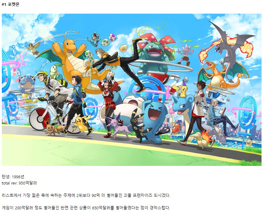 와 포켓몬은 오래된 IP도 아닌데 돈을 정말 많이 벌었네요.
