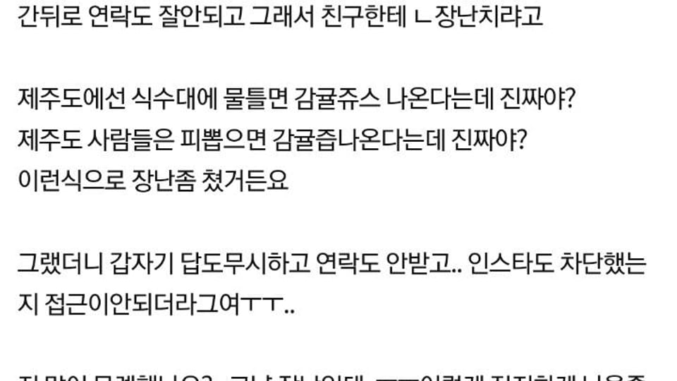 한 네티즌은 중학교때 친구가 제주도에 이사를 간 후 자신과 연락이 끊