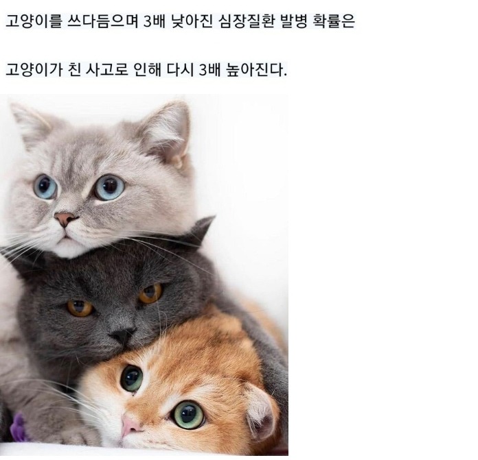 고양이를 쓰다듬으면 심장병 발병 확률이 3배 낮아진다고 합니다. 이를 본 누리꾼들은 "고양이 키우고 싶다" "나도 쓰다듬고 싶다" 등의 반응을 보였습니다.