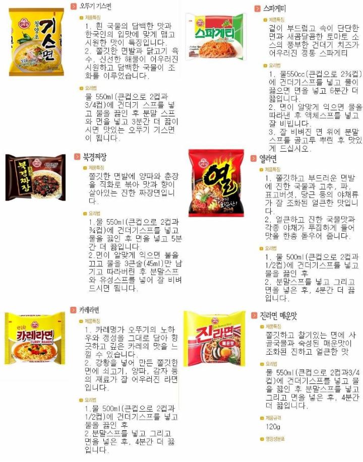 참고로 오뚜기 라면은 거의 다 찬물에 건더기 스프를 넣고 끓이는 조리법인데,