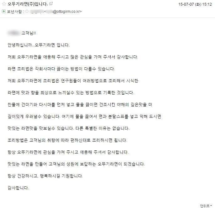 타사와 달리 이런 조리법을 고집하는 이유가 있냐는 한 블로거의 질문에
