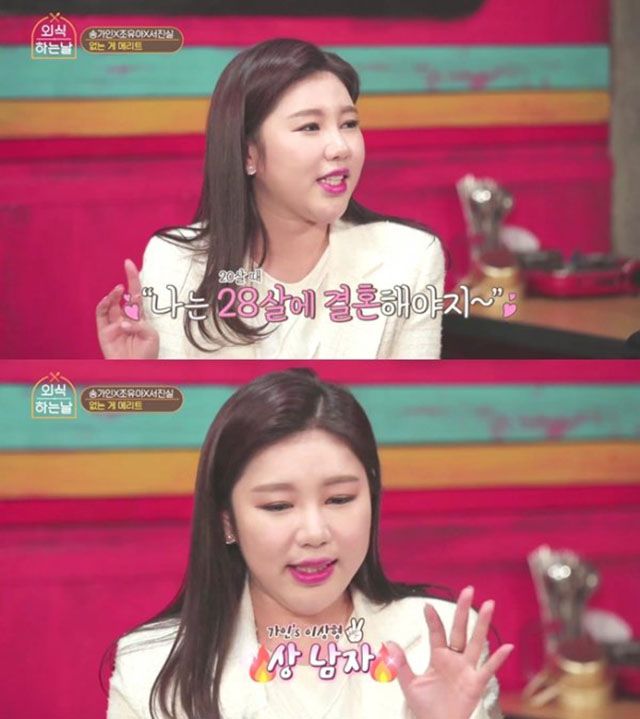 송가인은 "친구들 대부분 결혼을 했는데 그 중에 우리만 안 가고 있다"라며 "어렸을 때 28살에 결혼을 하고 싶었다"고 했다.