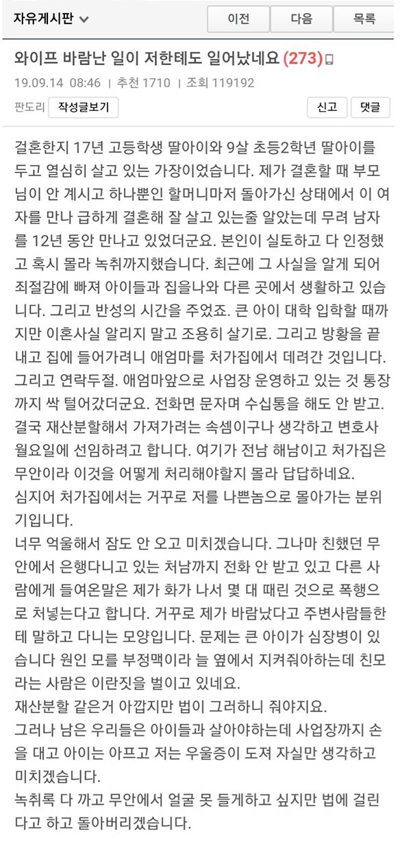 제 아내가 바람 날 줄 몰랐습니다…중년 남성의 고민