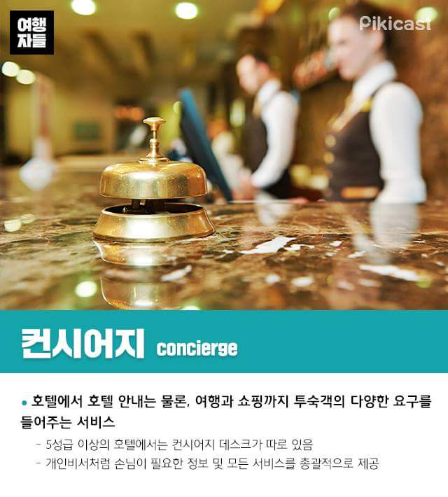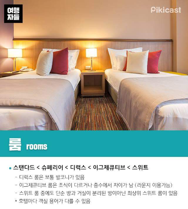 여행갈 때 알아두면 유용한 호텔용어 여행에서 가장 중요한 것 중 하나는 바로 숙소의 선택이다. 펜션, 게스트 하우스, 에어비엔비 등 다양하지만 서비스와 편의성과, 안전성을 이유로 호텔에 머무는 사람이 많을 것이다. 호텔을 예약할 때 알아두면 유용한 호텔 용어를 알아보자.