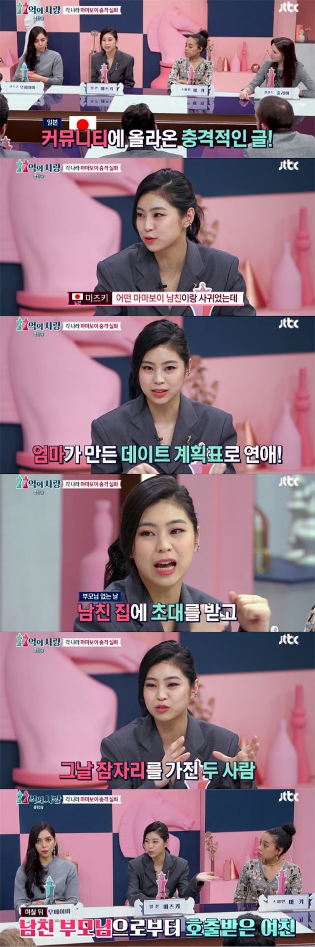 미즈키는 "어떤 마마보이 남친이랑 사귀었는데 엄마가 만든 데이트 계획표로 연애했다"면서 "남친 집에 초대를 받은 날 잠자리를 가졌다"고 했다.