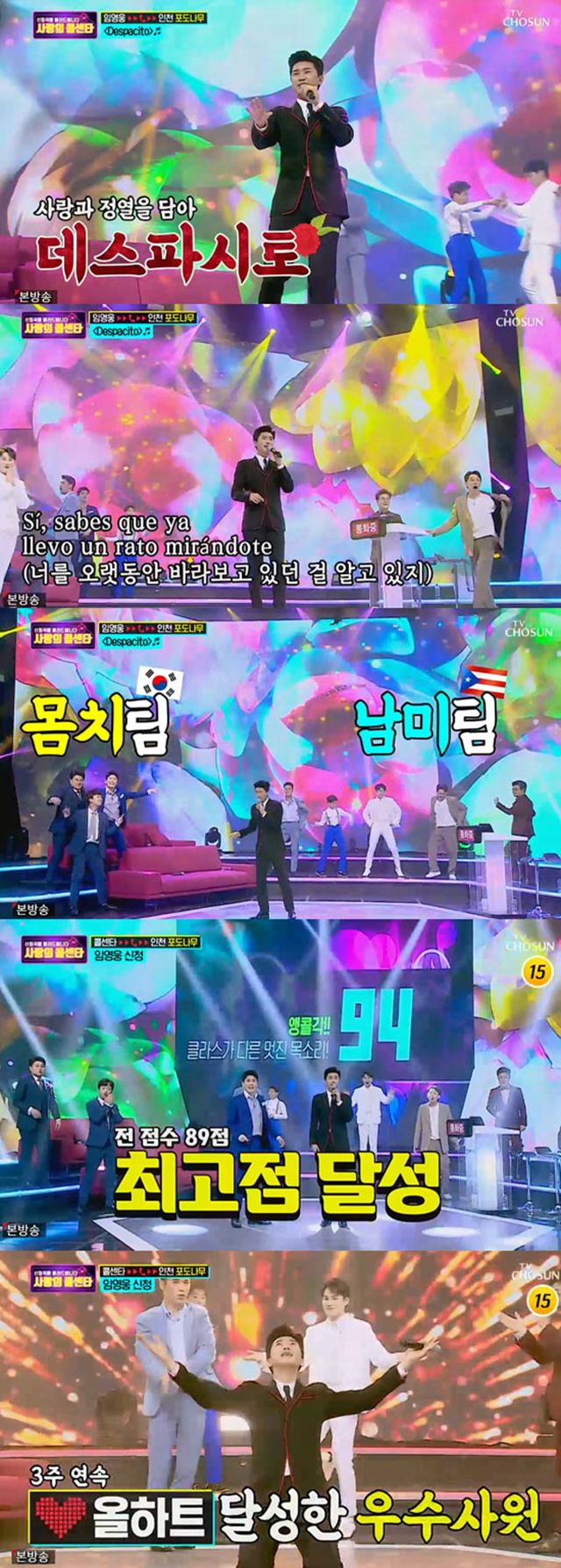 MC와 멤버들의 우려는 기우였다. 임영웅은 정확하고 화려한 발음으로 데스파시토를 흥겹게 소화했다. 또한 골반춤을 보이며 무대를 라틴풍으로 물들였다.