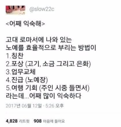 최근 한 온라인 커뮤니티에 올라온 고대 로마에서 노예를 효율적으로 부리는 방법이 화제가 되고있다.