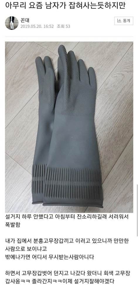 바로 간지나는 회색 장갑을 사주면 남편들이 열심히 설거지를 할 것입니다 ㅋㅋㅋㅋ