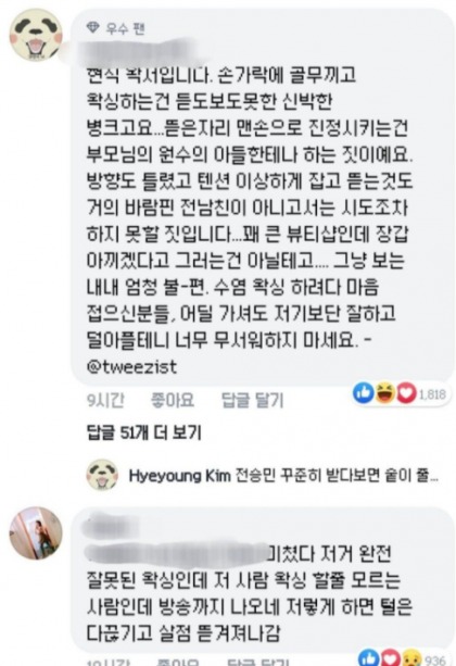 이를 본 전문 왁서들은 얼굴 부위에서 저런 왁싱을 한다면 털도 제대로 제모되지 않고 피부만 상한다고 합니다.