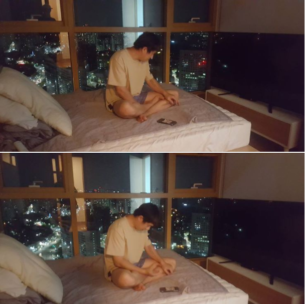 개시된 사진에는 서울의 야경이 내려다보이는 침실에서 앉아있는 기안 84의 모습이 담겨있다.