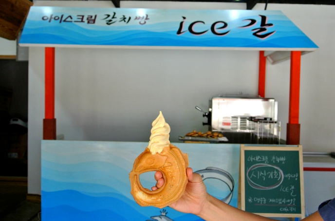 갈치빵은 빵 위에 아이스크림이 올려져 있으며, 제주도 중문에서 구입할 수 있다고 한다.