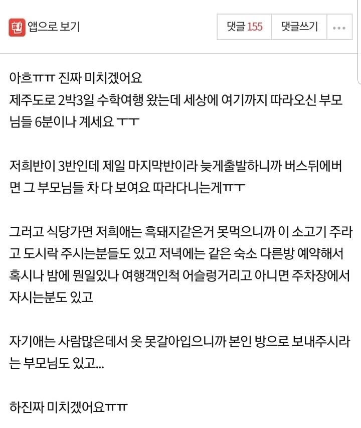 부모님들은 버스를 따라오는 것 뿐만 아니라 수학여행에 관여까지 해 논란이 되고 있다.