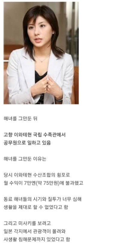 옆나라 일본에도 해녀라는 직업이 있다고 하는데요. 일본 방송에서도 미인 해녀가 출연해 화제가 됐다.