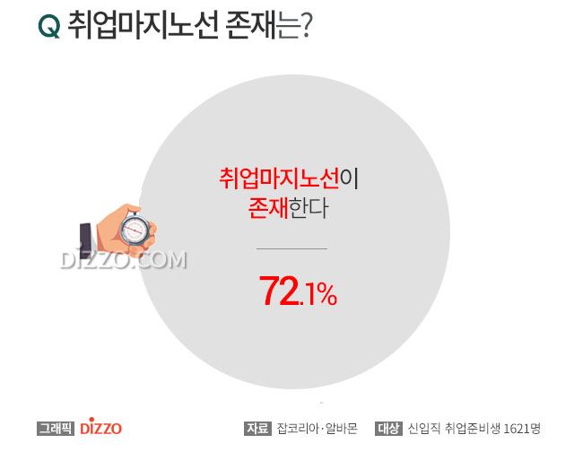 잡코리아와 알바몬이 함께 신입직 취업준비생을 대상으로 설문 조사를 진행했다. 설문에 참여한 응답자의 72.1%가 '취업 마지노선이 존재한다'고 답했다.