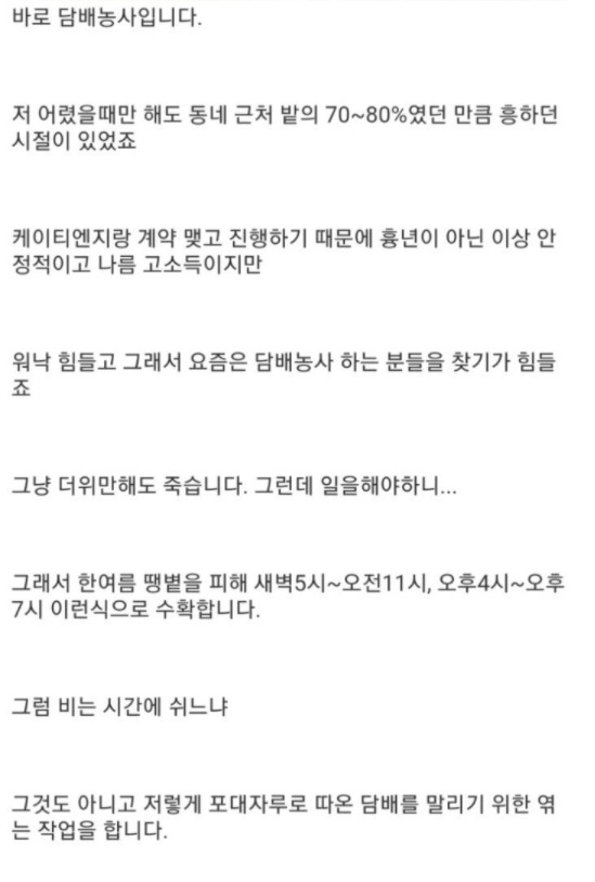 그렇다면 농사는 어떤 농사가 가장 어려울까요? 바로 담배 농사라고 합니다. 왜 담배 농사가 어려울까요?