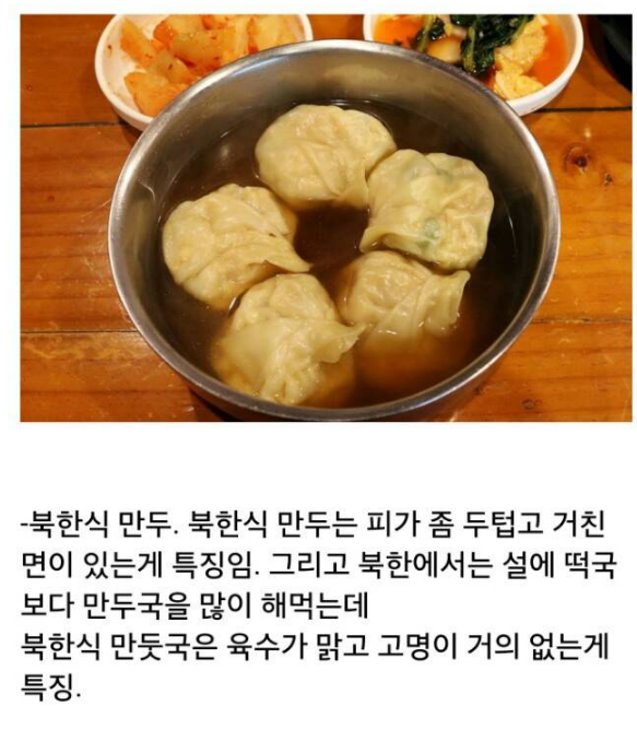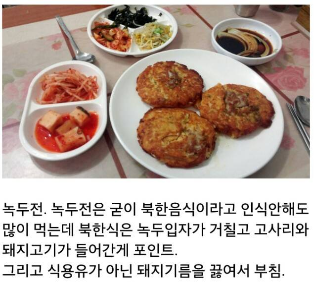 최근엔 이북에에서 온 새터민들과 그들의 북을 그리워하는 북한 출신 남한 사람들의 영향으로 남한에서도 접할 수 있는 음식들도 있지만 거의 맛을 상상할 수 없는 음식들이네요. 특징은 다들 간이 삼삼할 것 같습니다.
