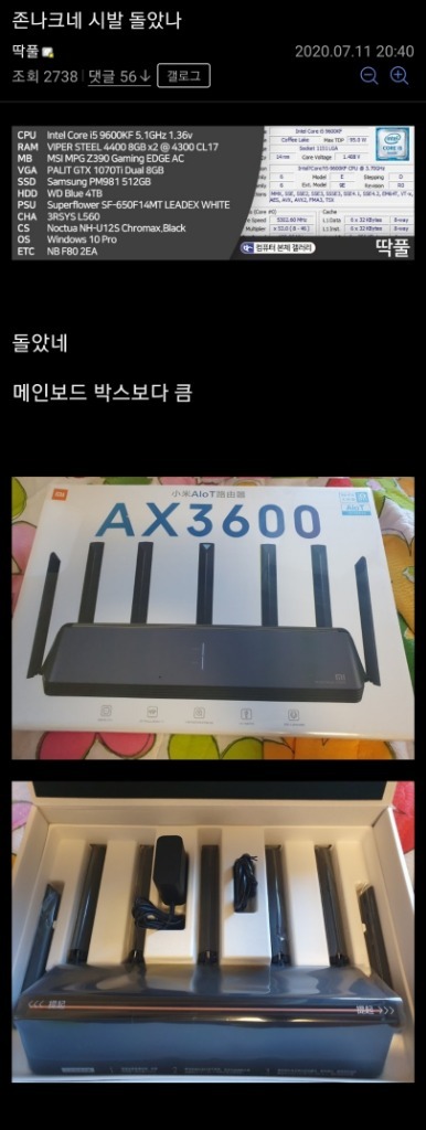 메인보드 박스보다 거대하다고 하는 샤오미의 ax3600 공유기 대체 어디에 쓰려고 공유기가 이렇게 거대한 것일까요?