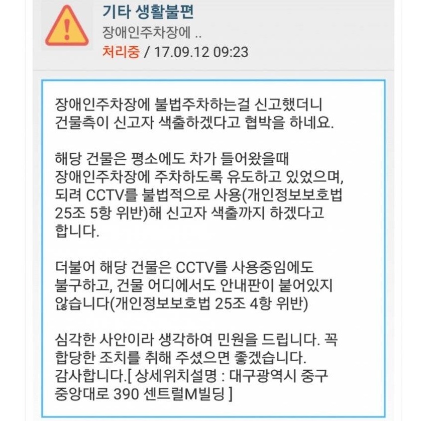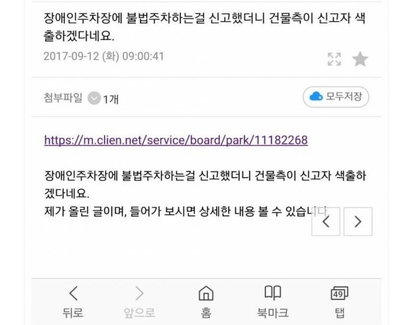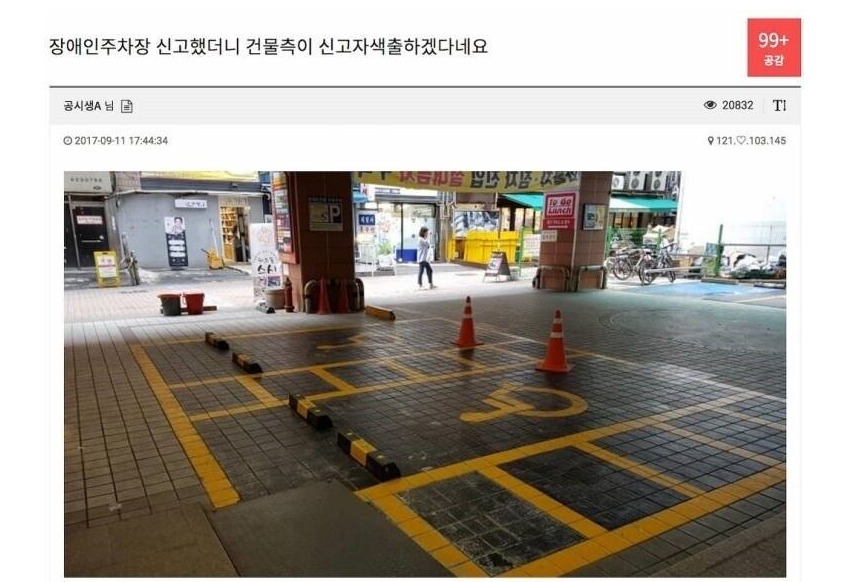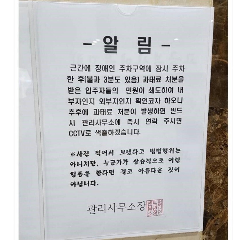 장애인 주차구역에 불법주차 한것 신고한 아파트 입주민 논란.