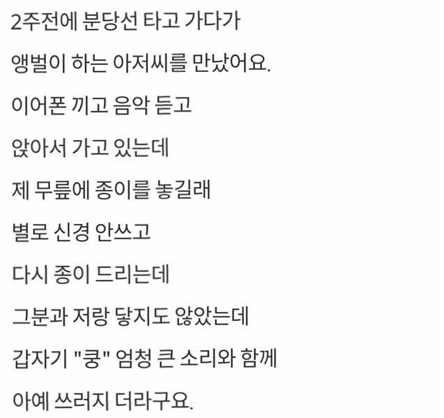 한 커뮤니티에 지하철에서 황당한 일을 겪은 사연이 올라왔다.
