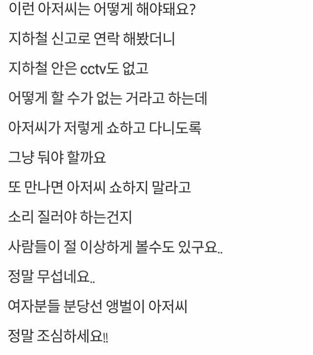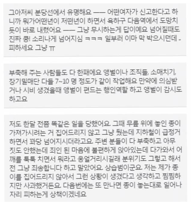 그런데 이런 일을 겪은 사람이 한둘이 아닐 정도로 비일비재해 지하철에 탑승하는 사람들에게 주의를 요하고 있다.