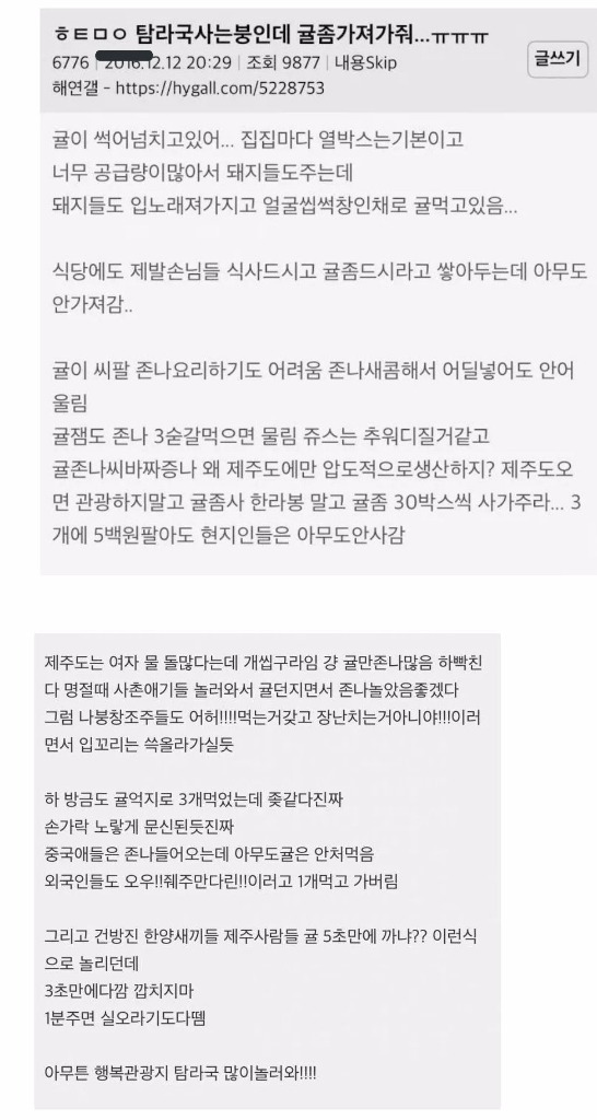 하지만 한 제주도민이 그 말은 틀린 말이라며 귤이 너무 많아 화가 난다고 쓴 글이 누리꾼들에게 웃음을 주고있습니다.