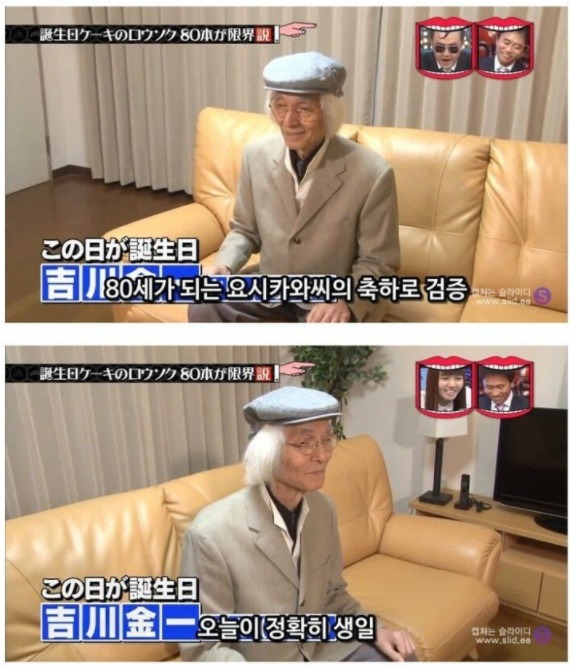 실험일에 마침 생일을 맞은 80세 할아버지를 초대했다.