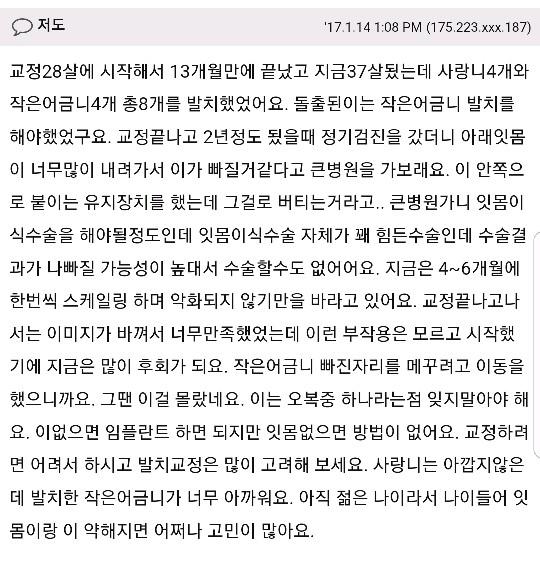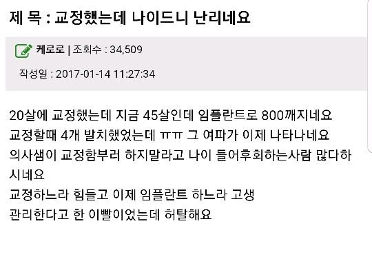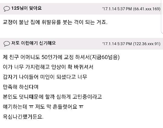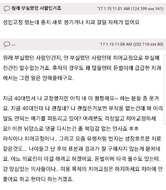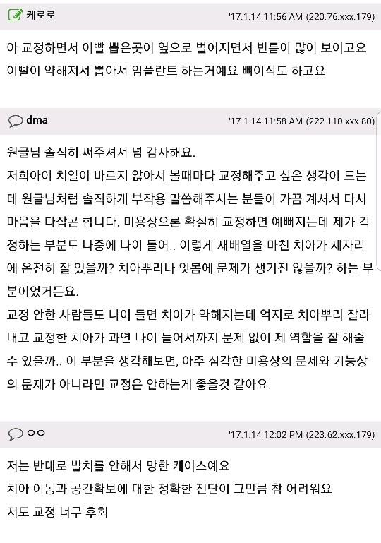 치료를 위한 불가피한 교정이 아닌 이상 경우 신중히 생각한 뒤에 결정하자.