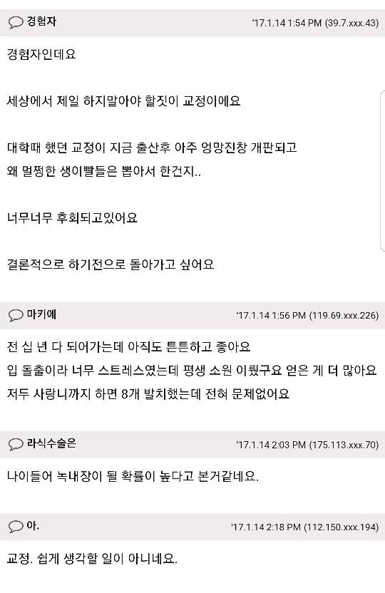 한 커뮤니티의 글 반응으로 교정 후 후회하는 사람들이 생각보다 많은 것으로 나타났다.