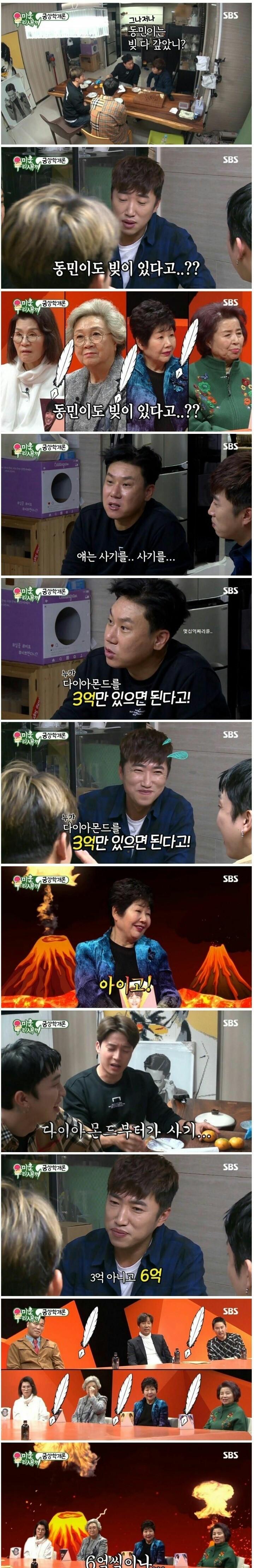 sbs 예능 프로그램 미운우리새끼에서 장동민이 빚이 있다는 사실이 공개되었다.