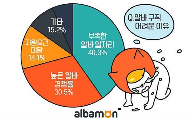 응답 결과 가장 큰 이유는 부족한 알바 일자리가 40.3%로 가장 큰 비율을 차지했다.