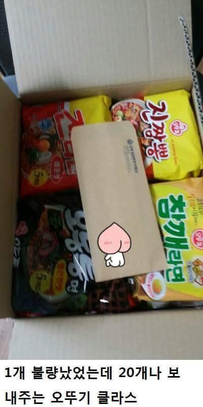 이에 이 네티즌은 오뚜기에 사진과 함께 문의를 남겼고, 오뚜기로부터 20개의 라면이 담긴 택배 상자를 받았다.