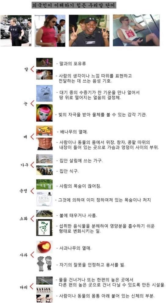 대표적으로 어떤 단어들이 외국인들이 이해하기 어렵다고 생각할까?