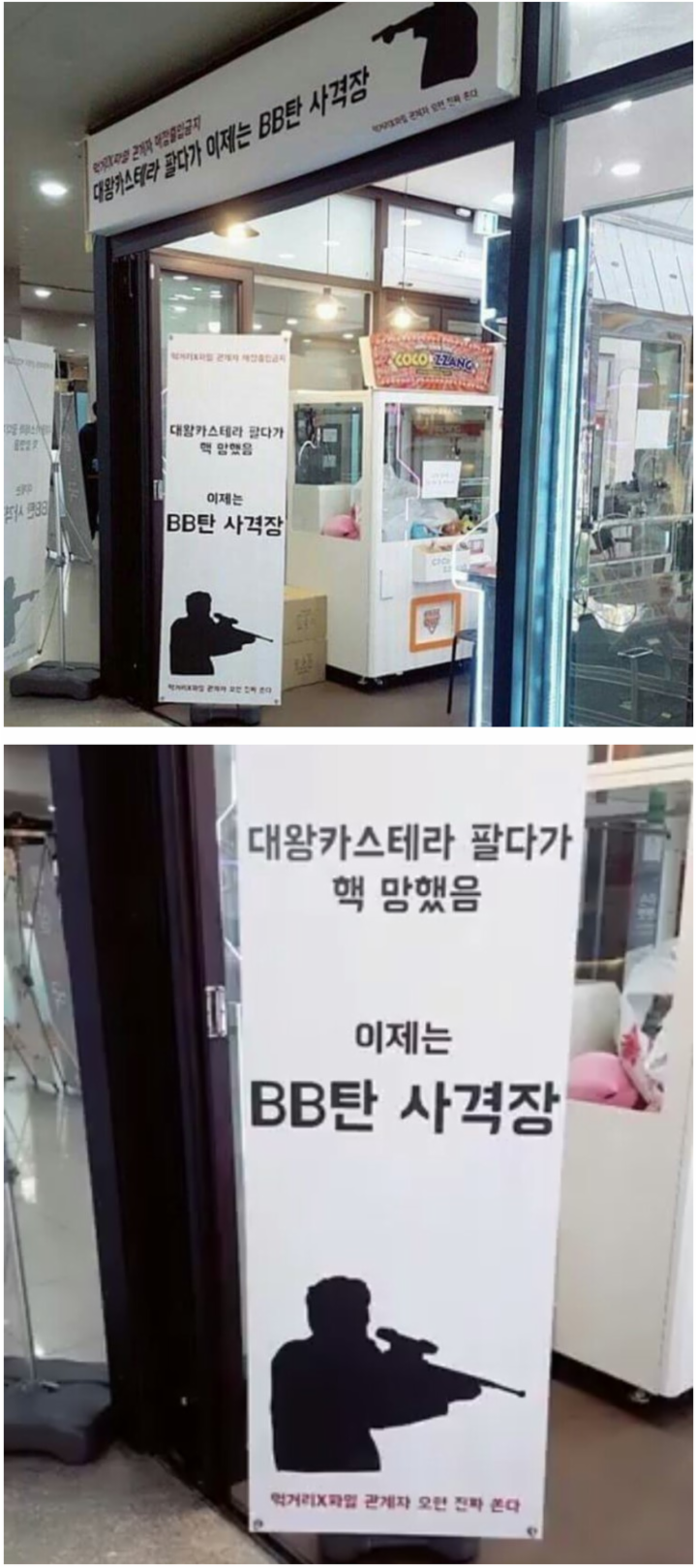 대왕카스테라 근황 한때 선풍적인 인기를 끌던 대왕카스테라의 최근 근황이 화제다. 대왕카스테라는 먹거리x파일 방송 이후 인기가 급감해 폐업을 한 곳이 많았다. 이후 대왕카스테라 사업을 접고 BB탄 사격장을 오픈한 점주의 홍보 문구가 눈길을 끈다. 한
