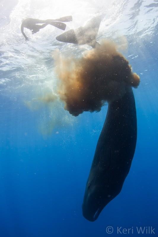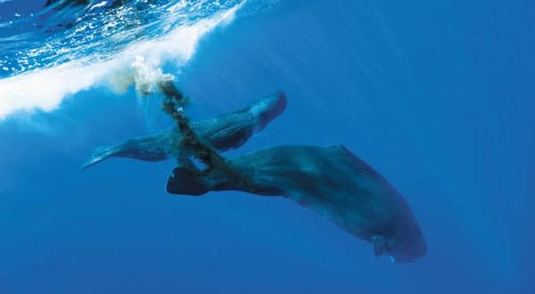 고래는 수심 100m 이하 깊은 곳에서 먹이를 먹고 해수면 위로 올라와 숨을 쉬면서 동시에 배설을 한다.