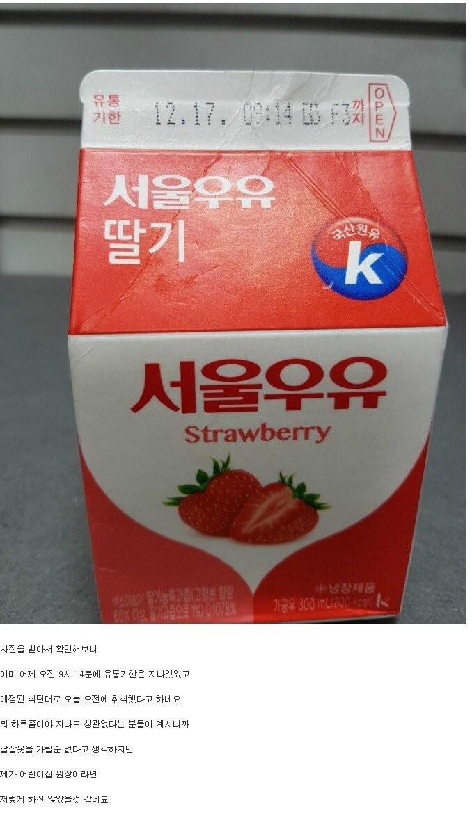 이 어린이집에서는 유통기한이 12월 17일까지인 우유를 12월 18일에 급식으로 나가게될 예정이었다.