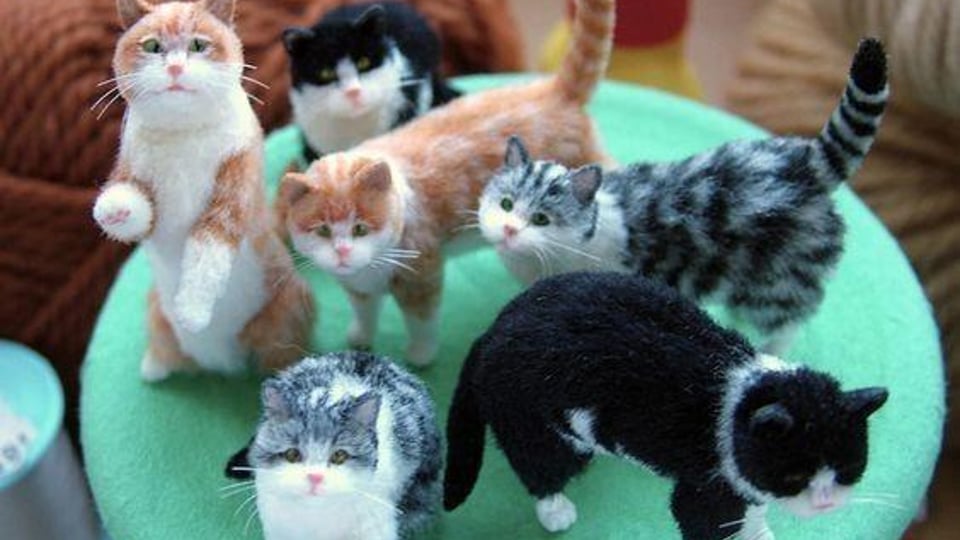 펠트로 만든 고양이가 눈길을 모으고 있다. 펠트로 만들어졌지만