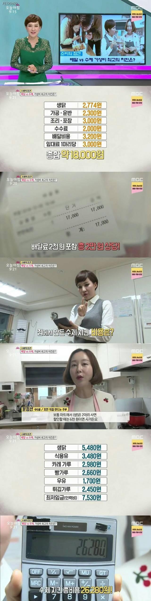 MBC의 배달치킨 vs. 수제치킨 비용산정 mbc에서는 배달 치킨과 수제 치킨 중 가성비 최고의 치킨을 선정했다. 하지만 비용을 산정하는 데 있어 기준이 정확하지 않았다는 지적이 많았다. 수제 치킨의 경우 2마리를 기준으로 산정되었으며 최저임금이 포함되는 것이 이해가 안간다는 입장이 많았다.