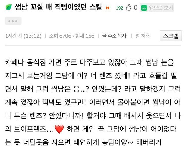 연애는 참 어렵다. 좋다고 들이댔다가 상대가 부담을 느끼고 뒤로 물러설 수도 있고, 너무 소극적인 자세로 나오면 상대가 나를 떠날 수도 있다. 온라인 한 커뮤니티에 '자칭' 연애 고수인 한 여성이 '썸남 꼬실 때 직빵이었던 스킬'을 공개했다. 만약 지금 썸을 타고 있다면 다음 스킬을 사용해 보도록 하자.