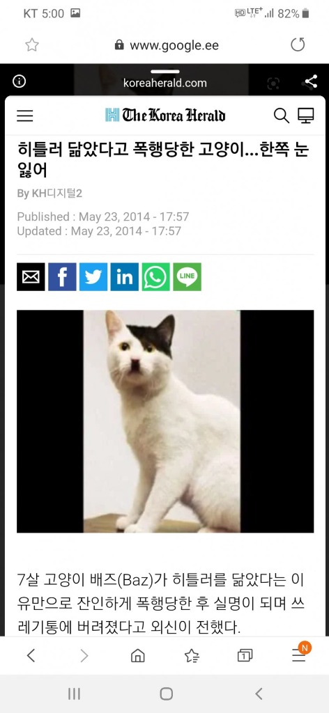이를 본 누리꾼들은 "고양이는 자신을 학대한 사람에게서 히틀러를 보았다" "저러면 지가 히틀러랑 다를게 뭐냐" 등의 반응을 보였습니다.